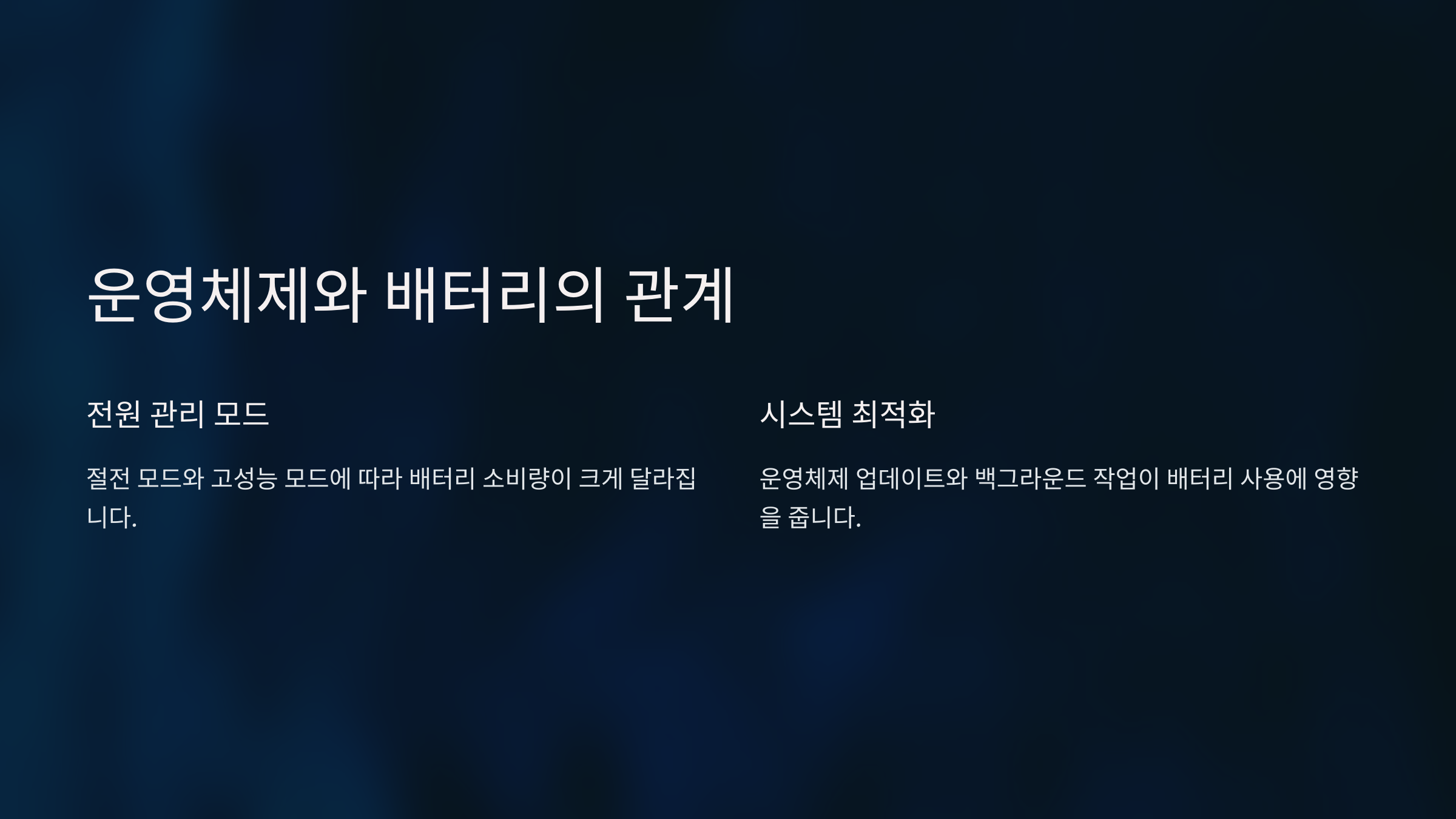 운영체제에 따라 배터리 효율은 정말 천차만별이에요. 맞는 설정을 적용해야 최적화된 성능을 경험할 수 있어요. ⚙️