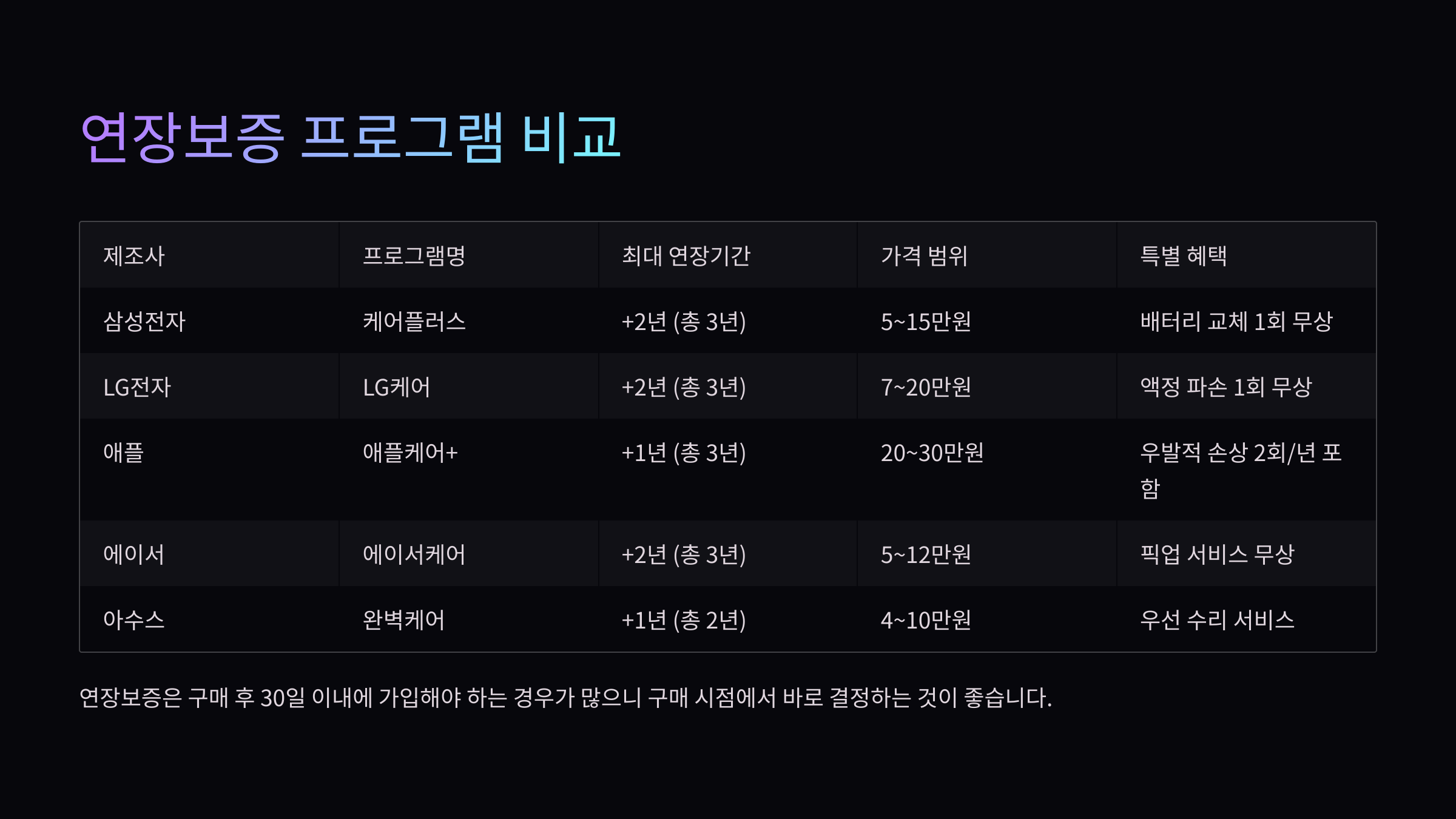 📅 연장보증 프로그램 비교