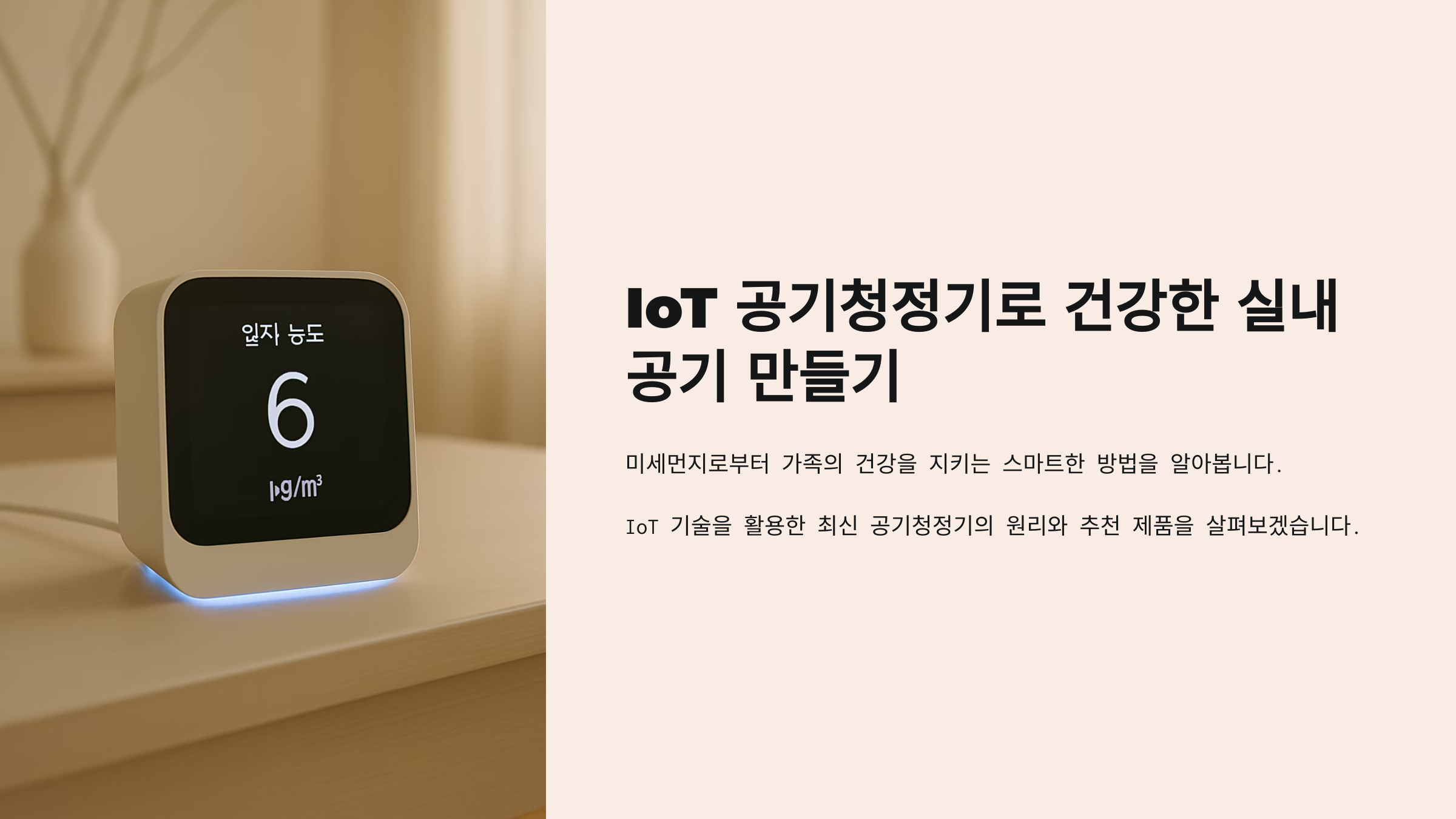 😨 미세먼지 많은 날엔 꼭 확인하세요! 똑똑한 IoT 공기청정기가 알아서 작동해 준다면 걱정도 줄어요.