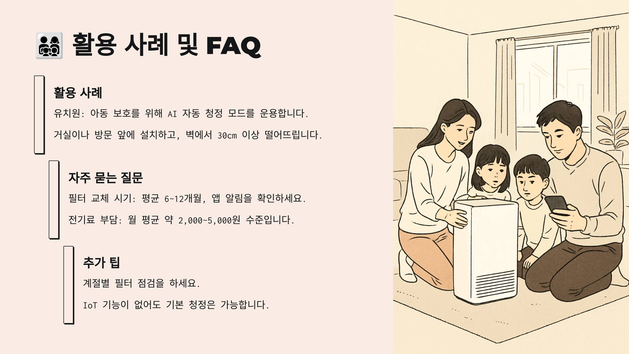 ✅ 구매 포인트: ① 내가 사용하는 공간 크기, ② 스마트 기능 활용도, ③ 유지비용만 정하면 자연스럽게 정답이 보일 거예요!