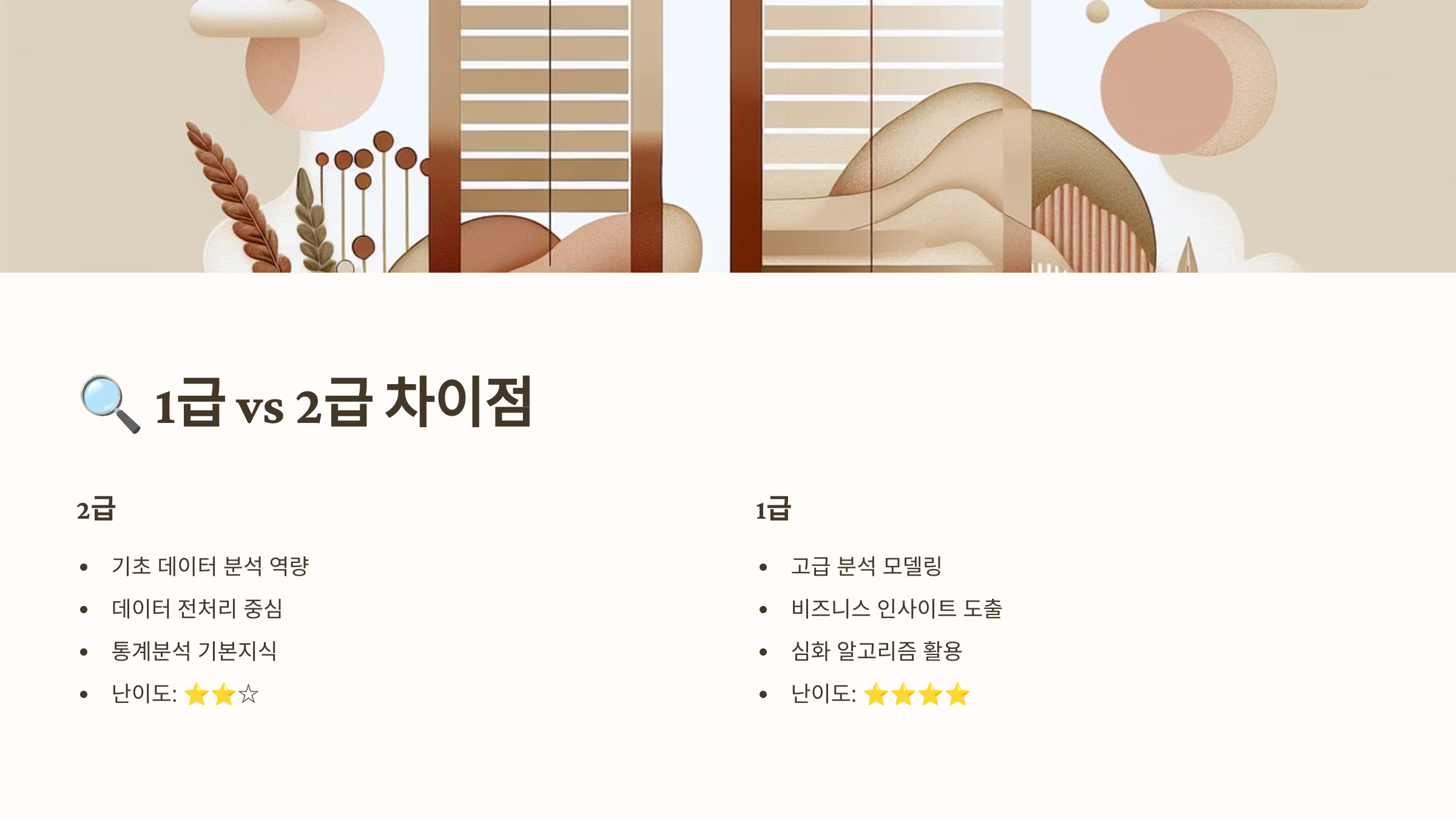 데이터 분석 커리어를 진지하게 생각한다면, 처음부터 1급으로 뛰어들기보단 2급을 통해 기반을 만들고, 이후 실무 경험을 쌓으며 1급을 준비하는 전략이 훨씬 더 안정적이에요. 🎓