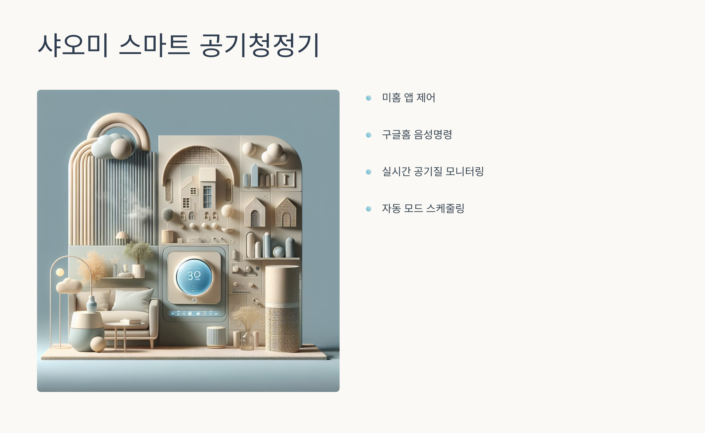샤오미는 가성비가 아주 뛰어난 스마트 공기청정기 브랜드로 알려져 있어요. 특히 ‘샤오미 미에어 프로 H’ 모델은 구글 어시스턴트 연동이 공식적으로 지원되고, 앱 제어도 아주 직관적이라 스마트홈 초심자도 쉽게 사용할 수 있어요.