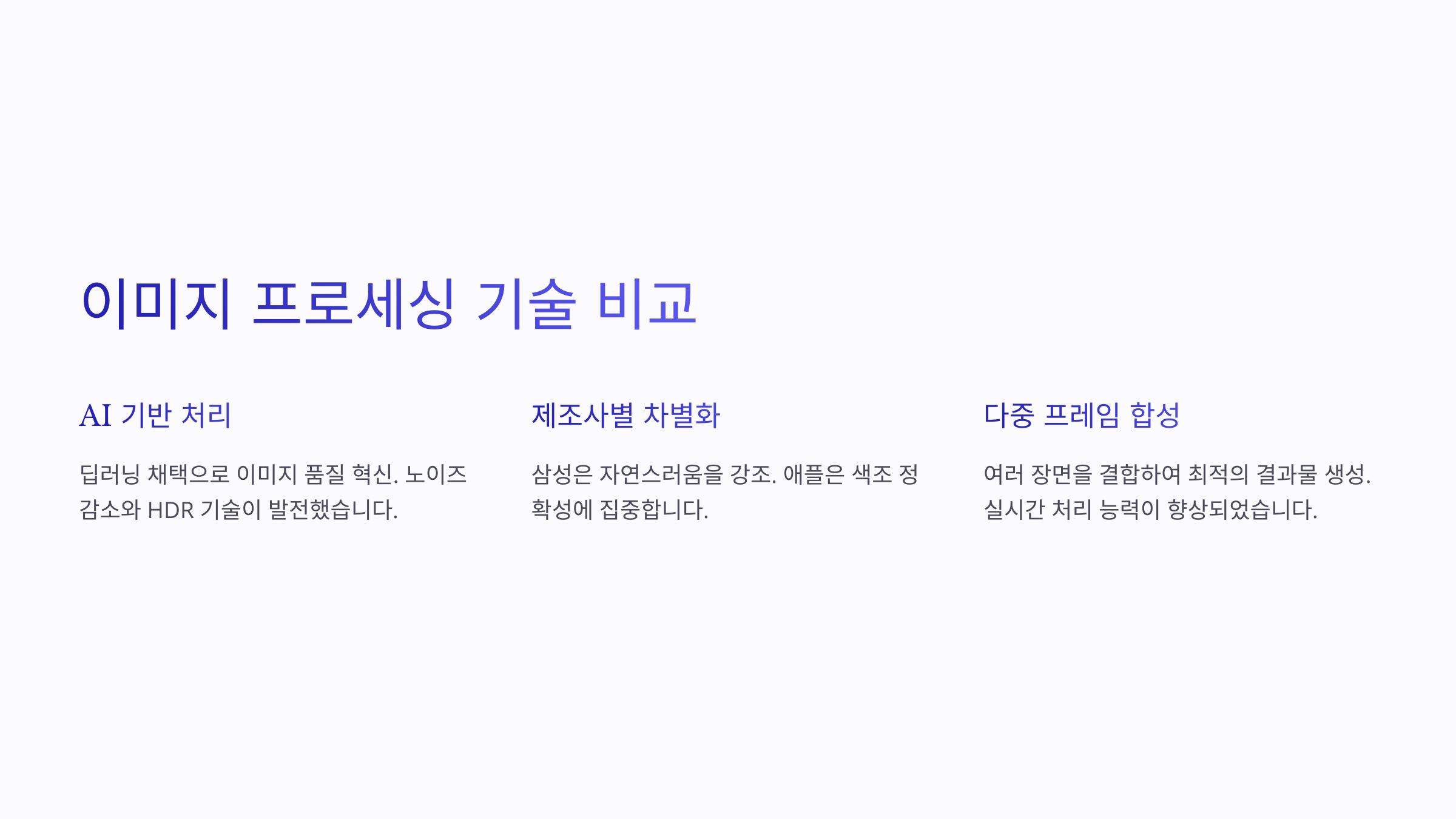 반면 갤럭시는 엑시노스나 스냅드래곤 칩을 사용하며, AI 연산보다는 전통적인 이미지 센서 처리 방식에 의존하는 경향이 강했어요.