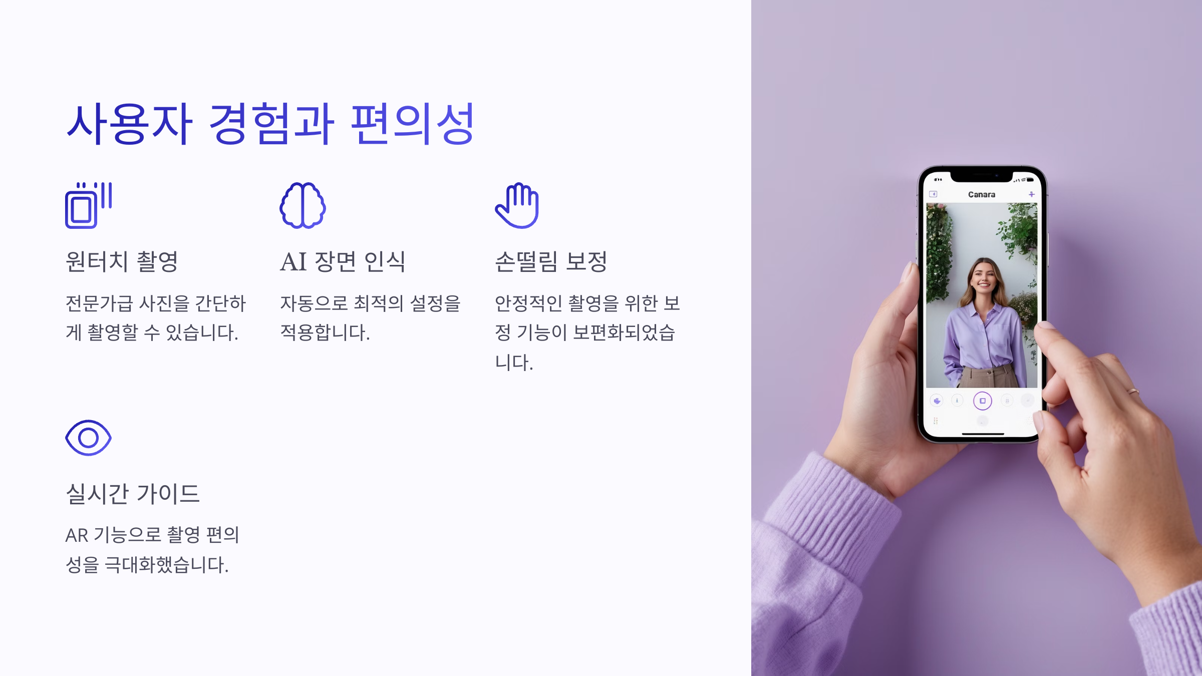 사진을 잘 찍는 것도 중요하지만, 얼마나 쉽게 찍을 수 있느냐도 무척 중요해요. 바로 사용자 경험, 즉 UX의 차이점이죠.
