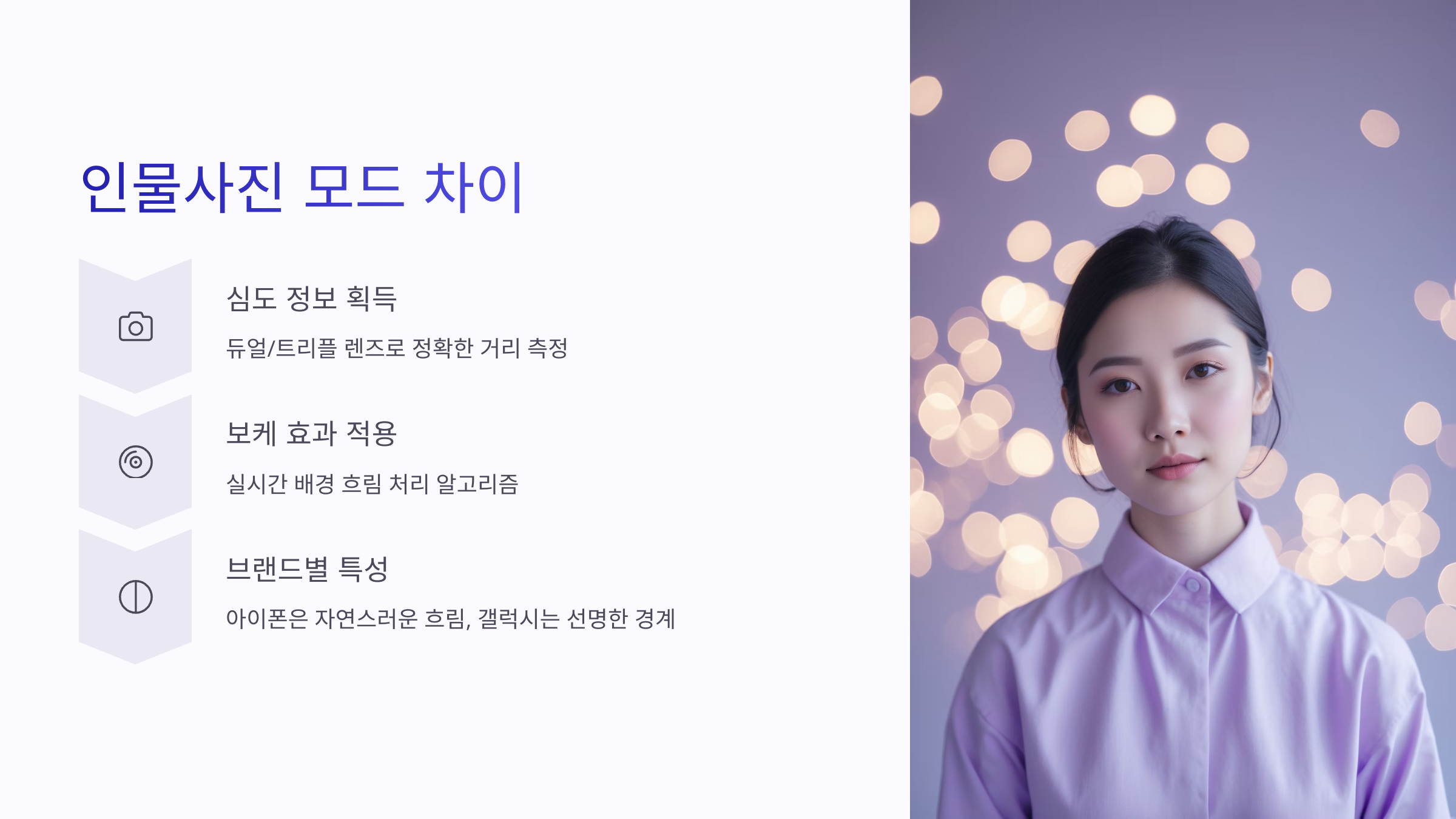 인물사진 모드는 단순히 배경을 흐리게 만드는 기능이 아니에요. 피사체와 배경의 거리를 계산하고, 피사체의 경계를 얼마나 정확히 인식하는지가 핵심이에요.