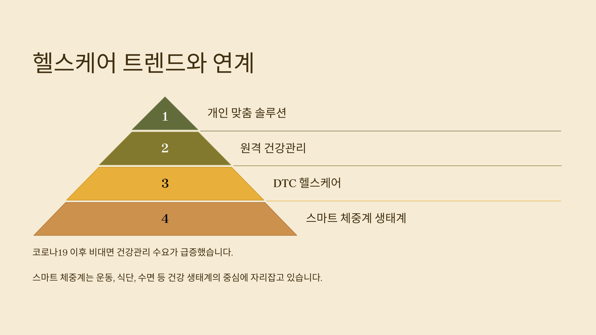 요즘 헬스케어 시장의 흐름은 '개인 맞춤형 데이터 기반 건강관리'로 빠르게 진화하고 있어요. 단순히 병원에서 진단을 받는 것을 넘어, 일상 속에서 데이터를 측정하고 기록하면서 스스로 건강을 관리하는 시대가 된 거죠. 스마트 체중계는 이 트렌드를 대표하는 기기 중 하나예요.