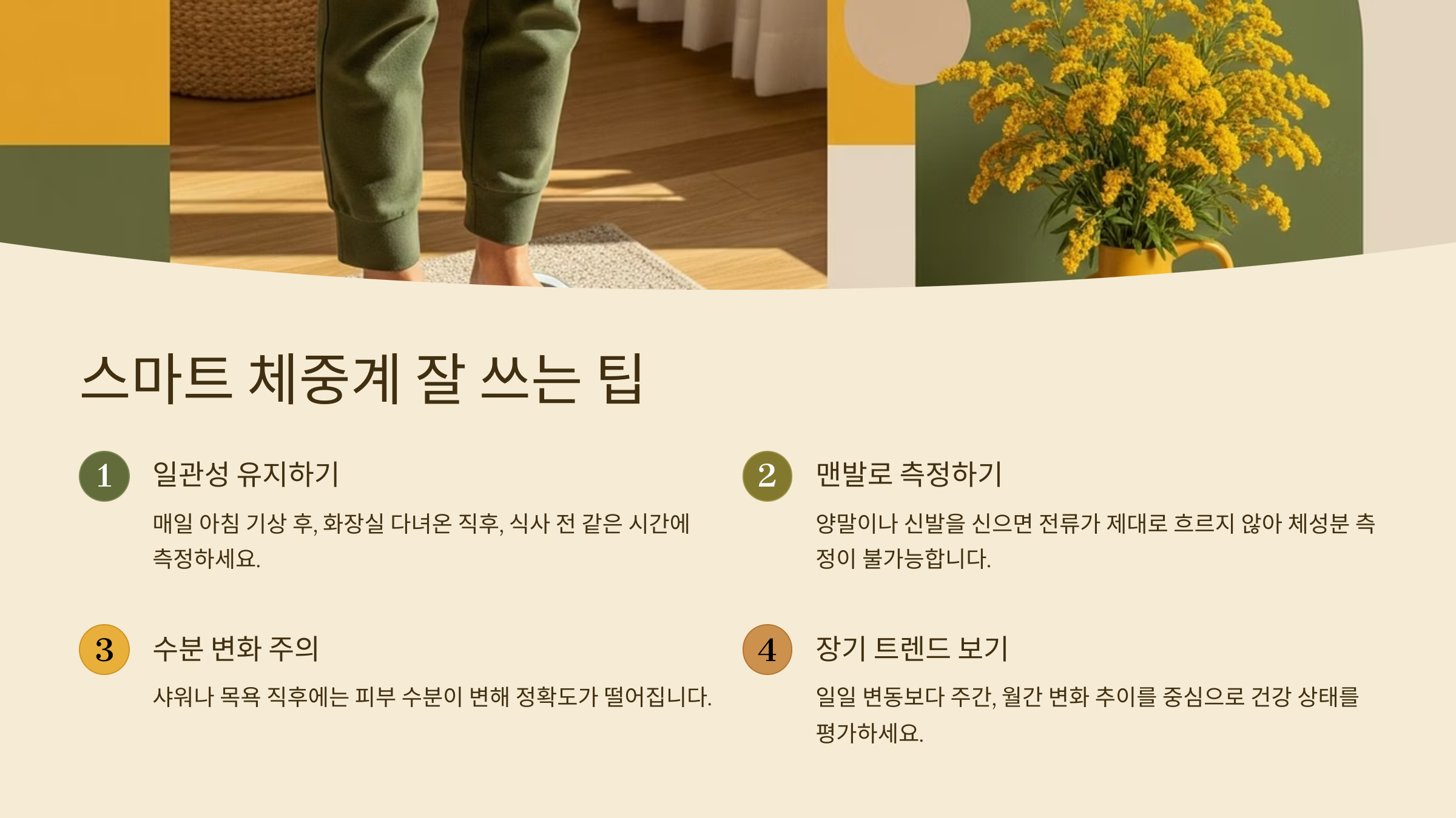 스마트 체중계는 단순히 발만 올려놓는 기기가 아니에요. 정확하고 효과적으로 사용하려면 몇 가지 습관을 잘 지켜야 해요. 제대로 측정해야 더 신뢰할 수 있는 데이터가 나오고, 그게 건강관리의 출발점이 되니까요.