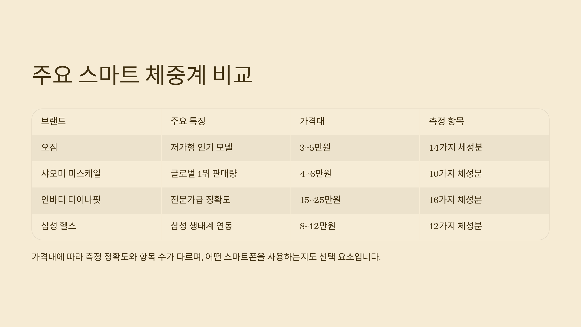 먼저 국내 소비자들에게 인기가 많은 제품으로는 샤오미, 오므론, 유바디, 삼성전자, 인바디 등의 체중계가 있어요. 샤오미는 가성비와 앱 호환성이 뛰어나고, 오므론은 정밀한 체성분 분석으로 호평을 받아요. 유바디는 한국형 데이터에 최적화되어 있다는 장점이 있어요.
