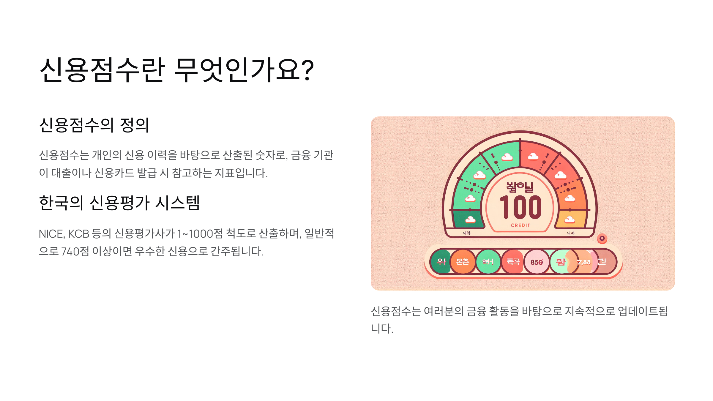 신용점수는 개인의 금융 신뢰도를 수치화한 값이에요. 📊