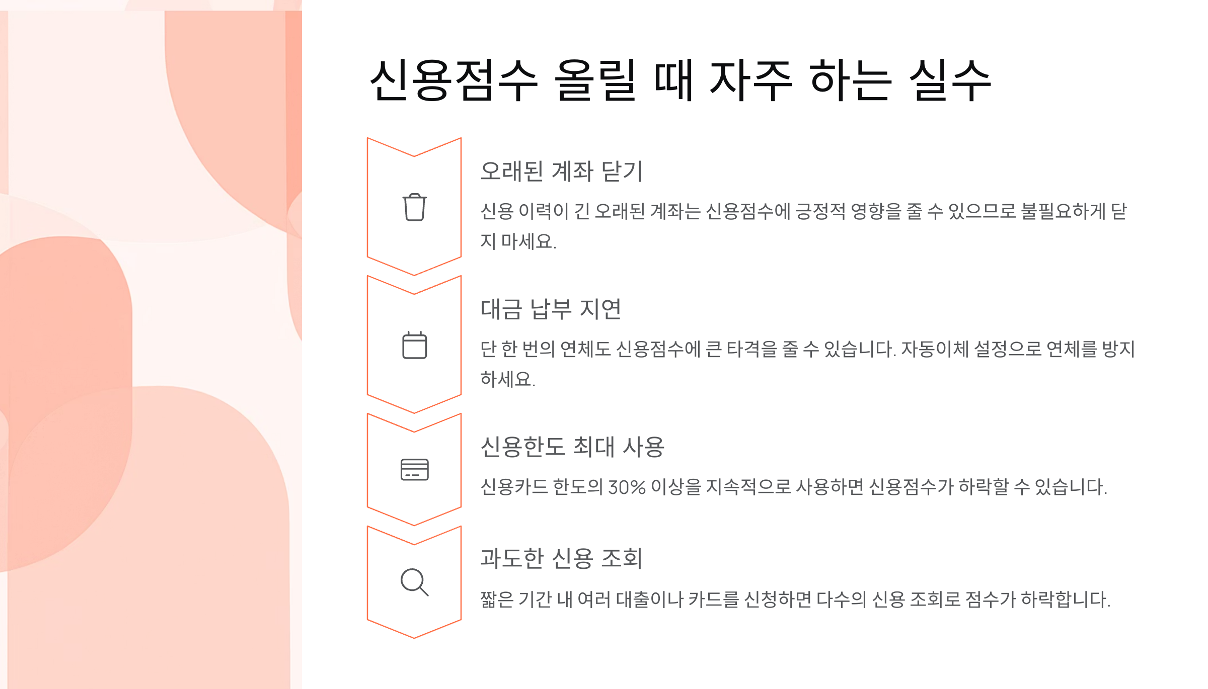 이제 다음 섹션에서는 신용점수 관리 중에 많은 사람들이 자주 저지르는 실수들을 알려드릴게요. 📉