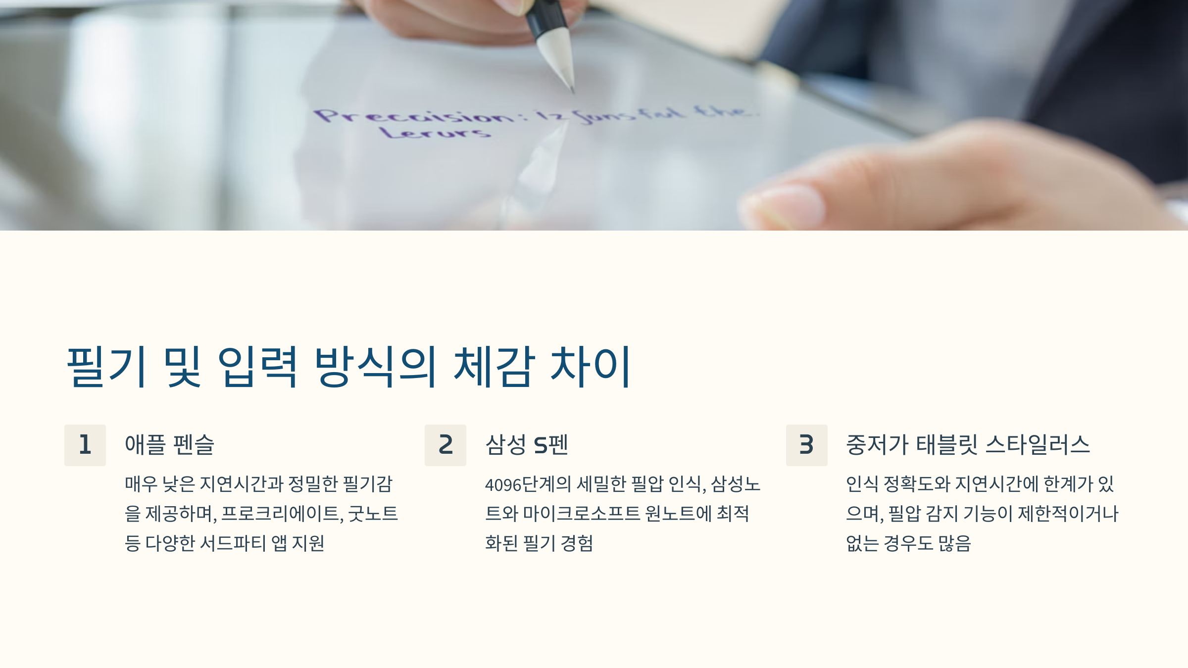 결론적으로, 단순히 "펜이 되냐"보다 "펜이 얼마나 빠르고 정확하게 인식되느냐", "얼마나 매끄럽게 기록되느냐"가 훨씬 중요해요. 이건 실제로 써보지 않으면 모를 만큼 큰 차이로 다가오죠.