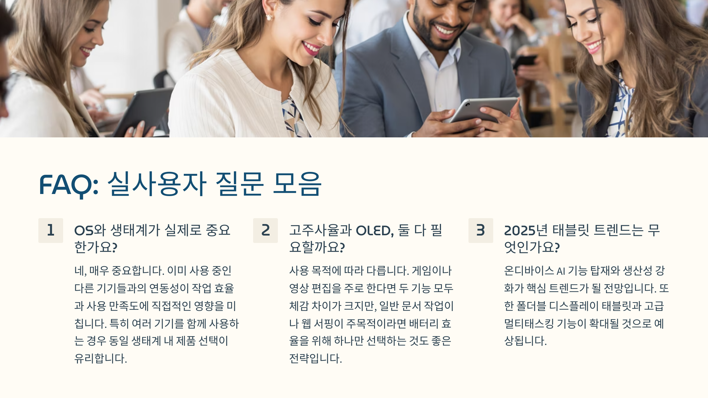 이제 어떤 태블릿이 오랫동안 안정적으로 쓸 수 있는지도 판단할 수 있겠죠? 다음 마지막 세션에서는 자주 묻는 질문(FAQ) 8가지에 답하면서 지금까지 이야기한 내용을 정리해드릴게요 😊
