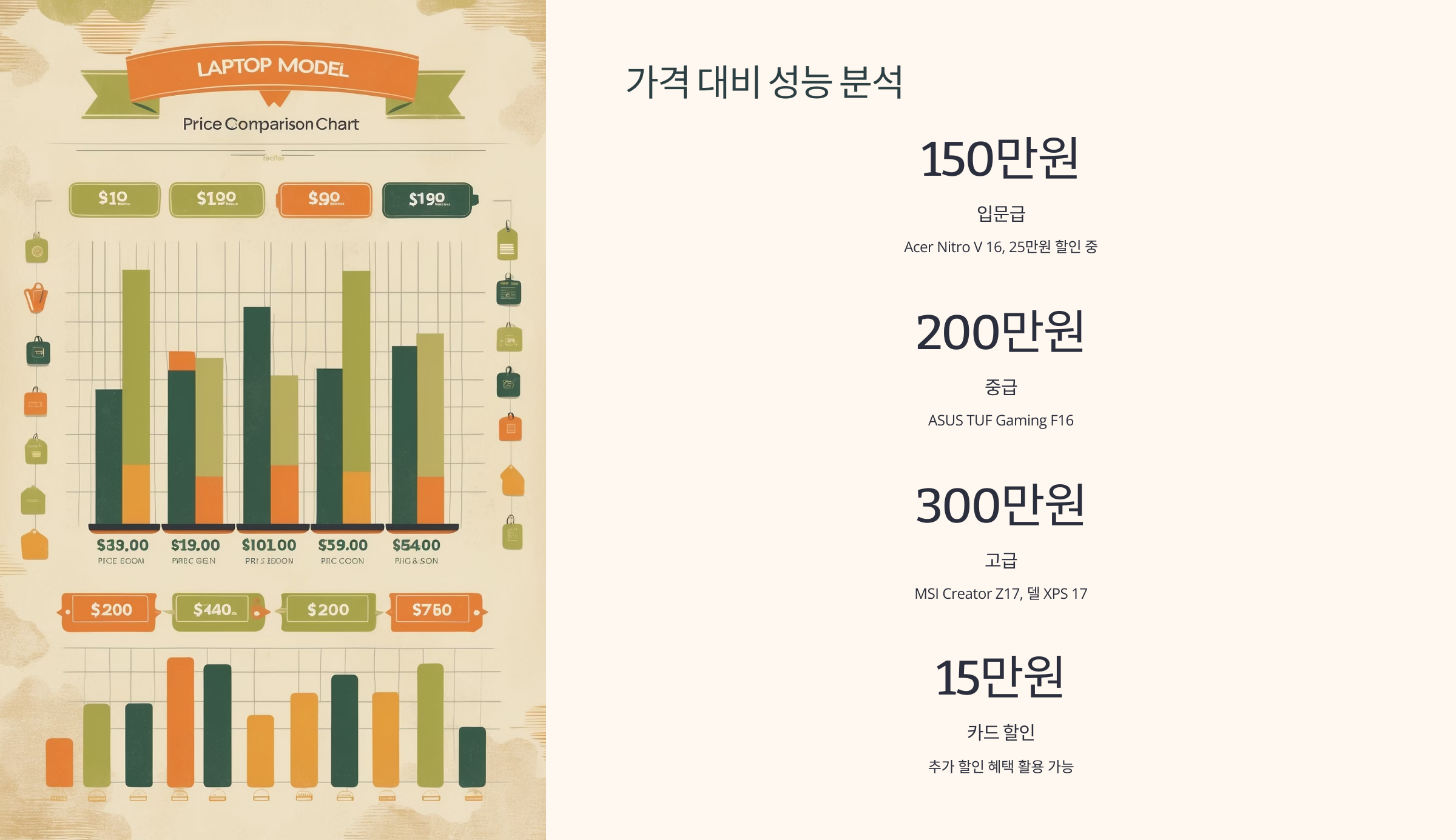 그리고 브랜드에 따라 가격 차이가 크기도 해요. 동일한 사양이라도 MSI나 ASUS는 조금 더 저렴하고, 맥북이나 Razer는 프리미엄 이미지와 생태계 때문에 가격이 높아요.