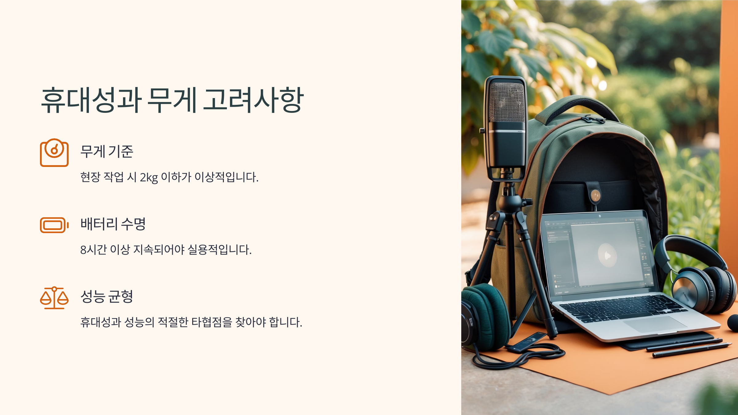 💼 휴대성과 무게 체크하기
