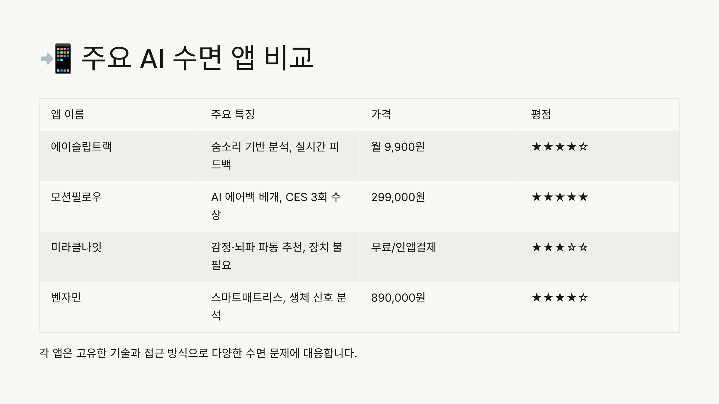📲 주요 AI 수면 앱 비교